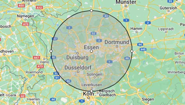 Suchen Sie zuverlässige Transportmöglichkeiten in und um Essen? Suchen Sie nicht weiter! Unsere Transportdienstleistungen sind jetzt innerhalb eines Umkreises von 50 Kilometer von Essen verfügbar und bieten Ihnen so, problemlose Umzugs- und Möbeltransportlösungen.